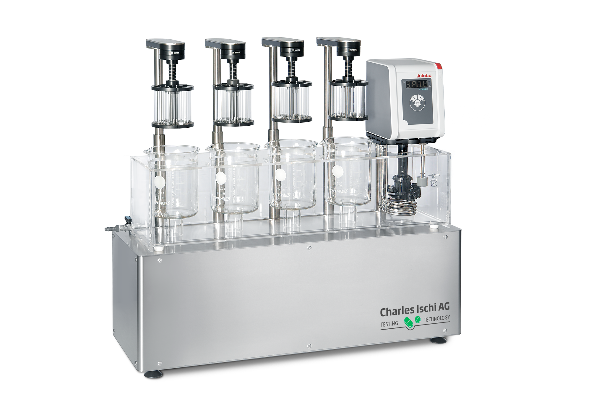 As each station is powered separately, you can test up to four different products at the same time. The softstart function ensures that the testing basket is immersed in a controlled manner.