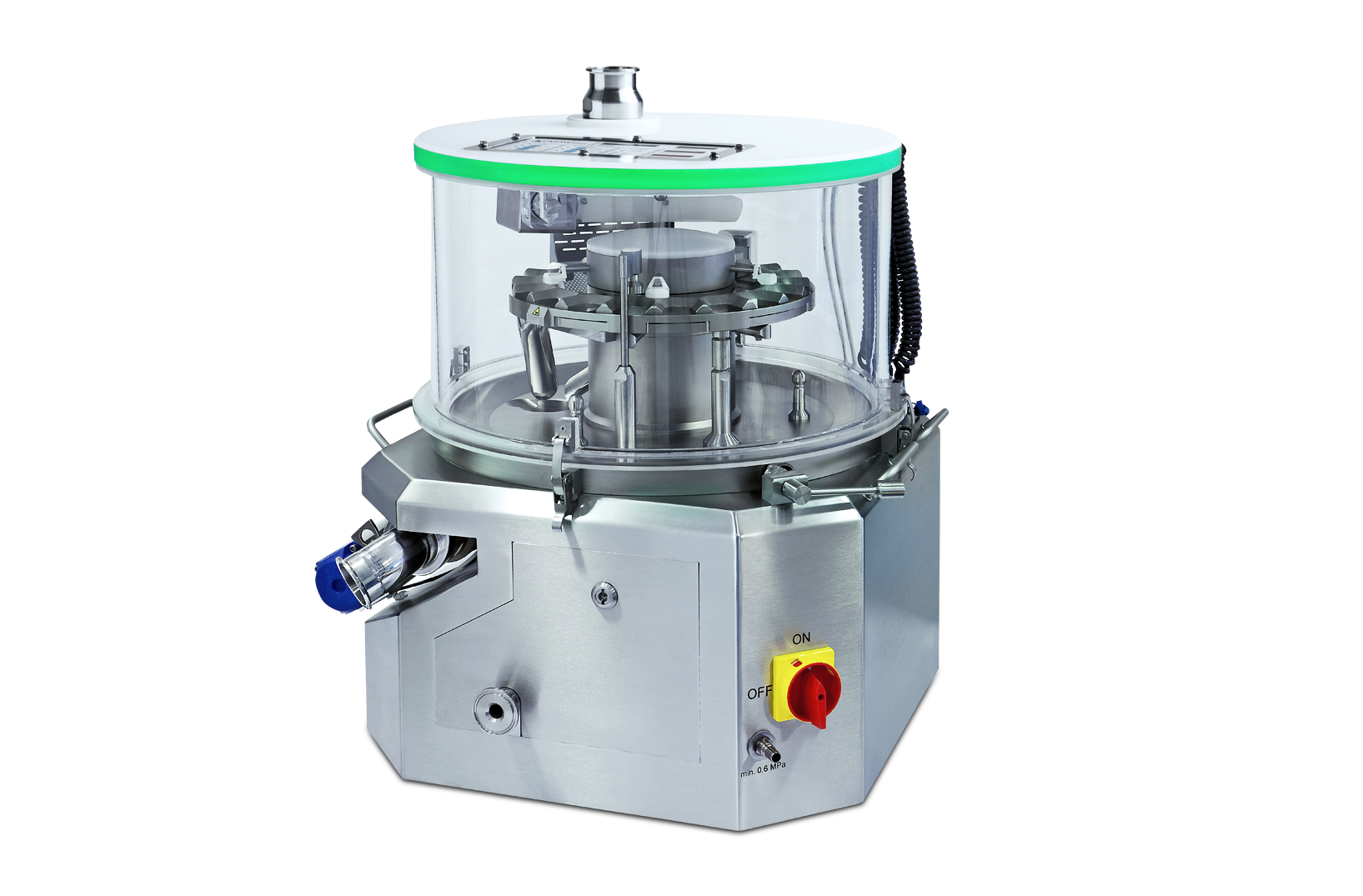A possible wash concept after production of high potent drugs is to seal and disconnect the tester from the tablet press and move it to a washing area. Furthermore, the UTS-IP65i includes a special wash program which can be configured by the operator.